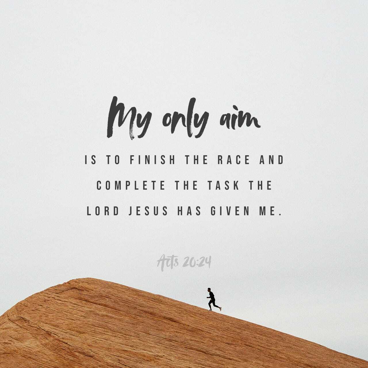 “내가 달려갈 길과 주 예수께 받은 사명 곧 하나님의 은혜의 복음을 증언하는 일을 마치려 함에는 나의 생명조차 조금도 귀한 것으로 여기지 아니하노라”(사도행전20:24)