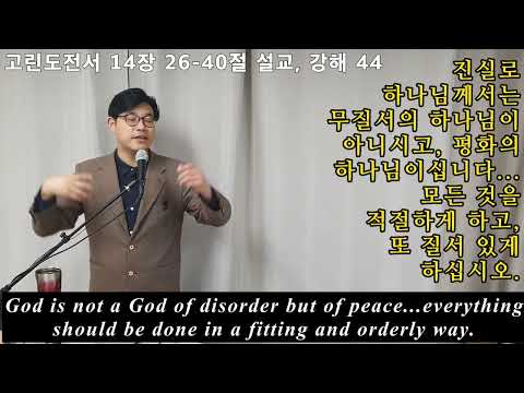 고린도전서 14장 26-40절 설교, 강해 44 "모든 것을 품위 있게 하고 질서 있게 하라. 하나님은 무질서의 하나님이 아니시요...