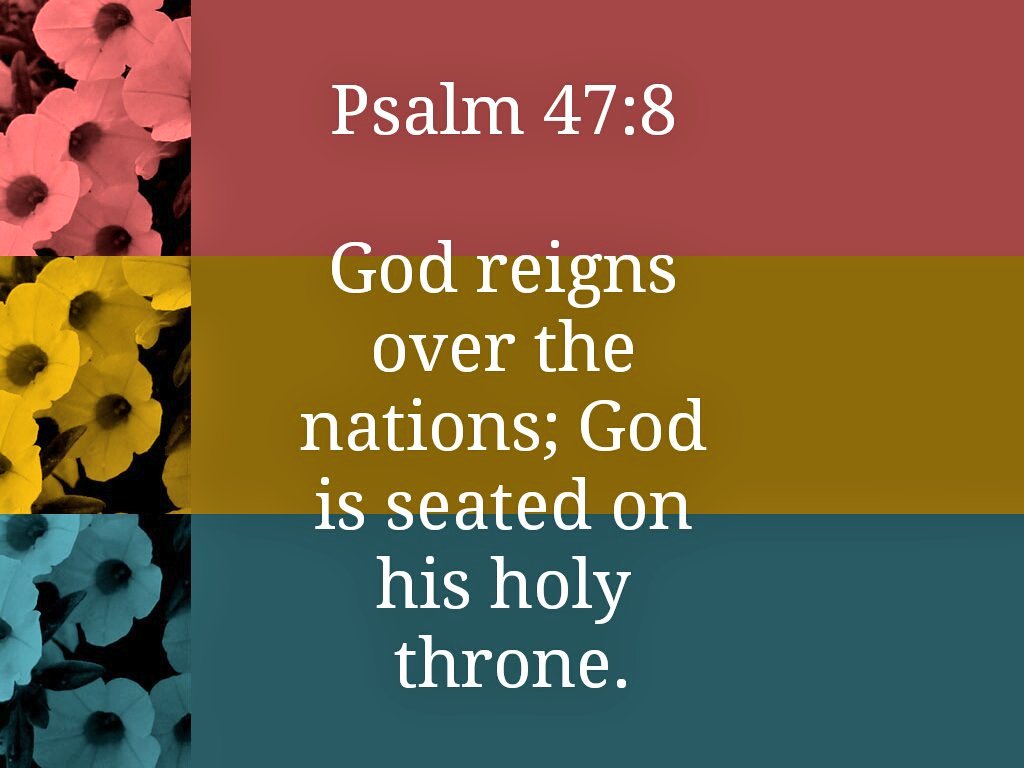 4 우리를 위하여 기업을 택하시나니 곧 사랑하신 야곱의 영화로다(셀라). 5 하나님께서 함성중에 올라가심이여, 여호와께서 나팔 소리 중에 올라가시도다. 6 찬송하라, 하나님을 찬송하라, 우리 왕을 찬송하라. 7 하나님은 온 땅의 왕이심이라. 지혜의 시로 찬송할지어다. 8 하나님이 뭇 백성을 다스리시며 하나님이 그의 거룩한 보좌에 앉으셨도다. 9 뭇 나라의 고관들이 모임이여 아브라함의 하나님의 백성이 되도다. 세상의 모든 방패는 하나님의 것임이여, 그는 높임을 받으시리로다.