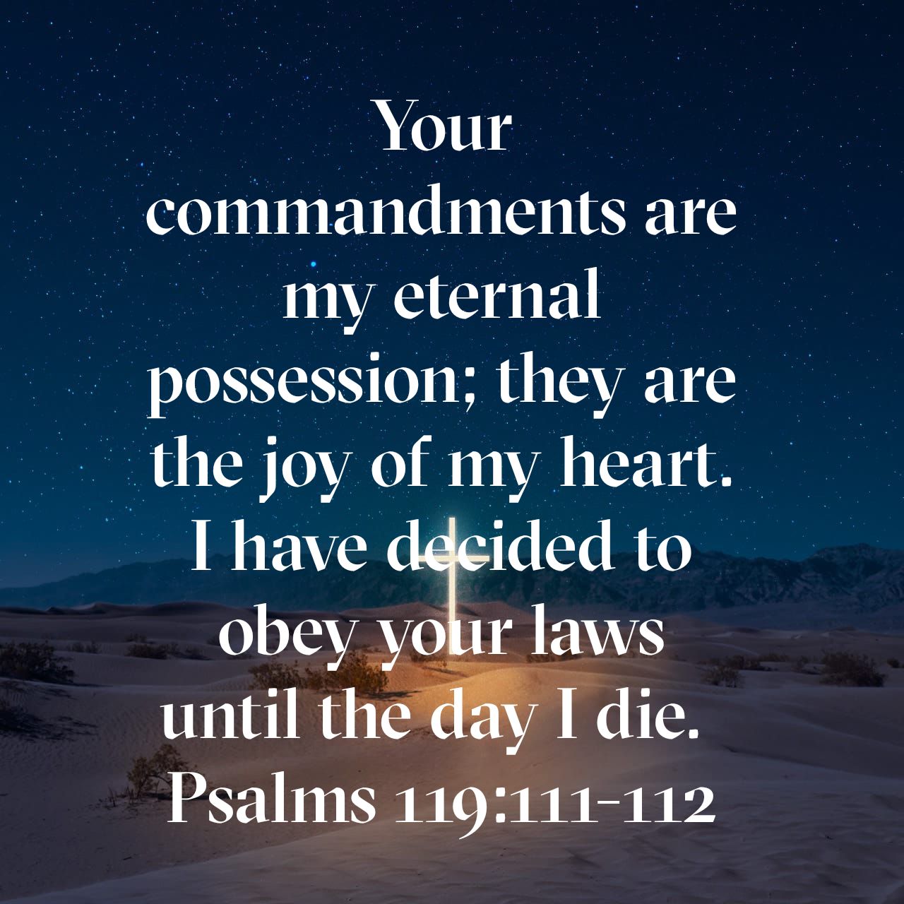 105 주의 말씀은 내 발에 등이요, 내 길에 빛이니이다. 106 주의 의로운 규례들을 지키기로 맹세하고 굳게 정하였나이다. 107 나의 고난이 매우 심하오니 여호와여 주의 말씀대로 나를 살아나게 하소서. 108 여호와여 구하오니, 내 입이 드리는 자원제물을 받으시고 주의 공의를 내게 가르치소서. 109 나의 생명이 항상 위기에 있사오나 나는 주의 법을 잊지 아니하나이다. 110 악인들이 나를 해하려고 올무를 놓았사오나 나는 주의 법도들에서 떠나지 아니하였나이다. 111 주의 증거들로 내가 영원히 나의 기업을 삼았사오니 이는 내 마음의 즐거움이 됨이니이다. 112 내가 주의 율례들을 영원히 행하려고 내 마음을 기울였나이다.